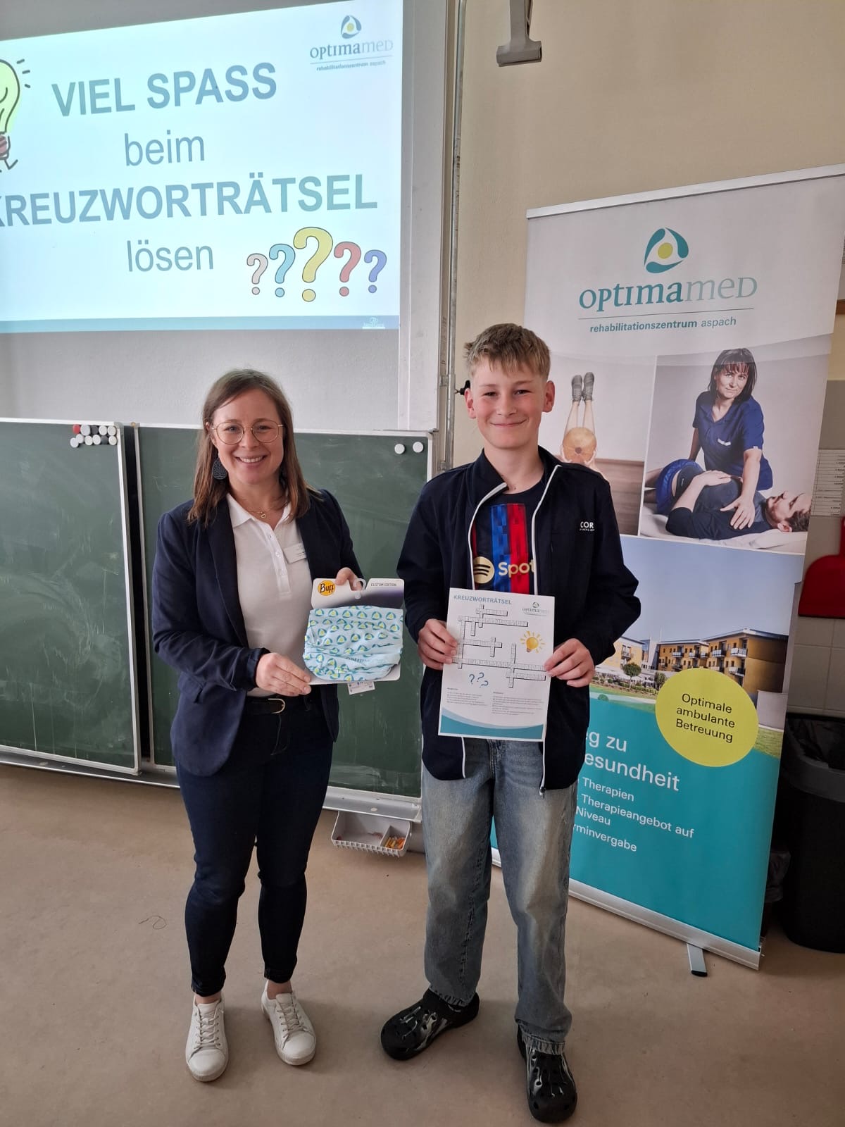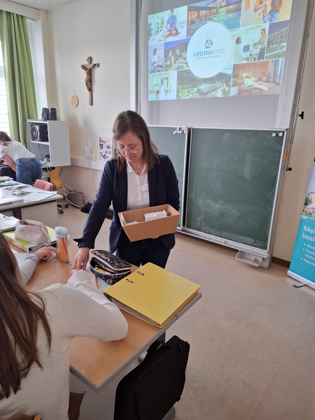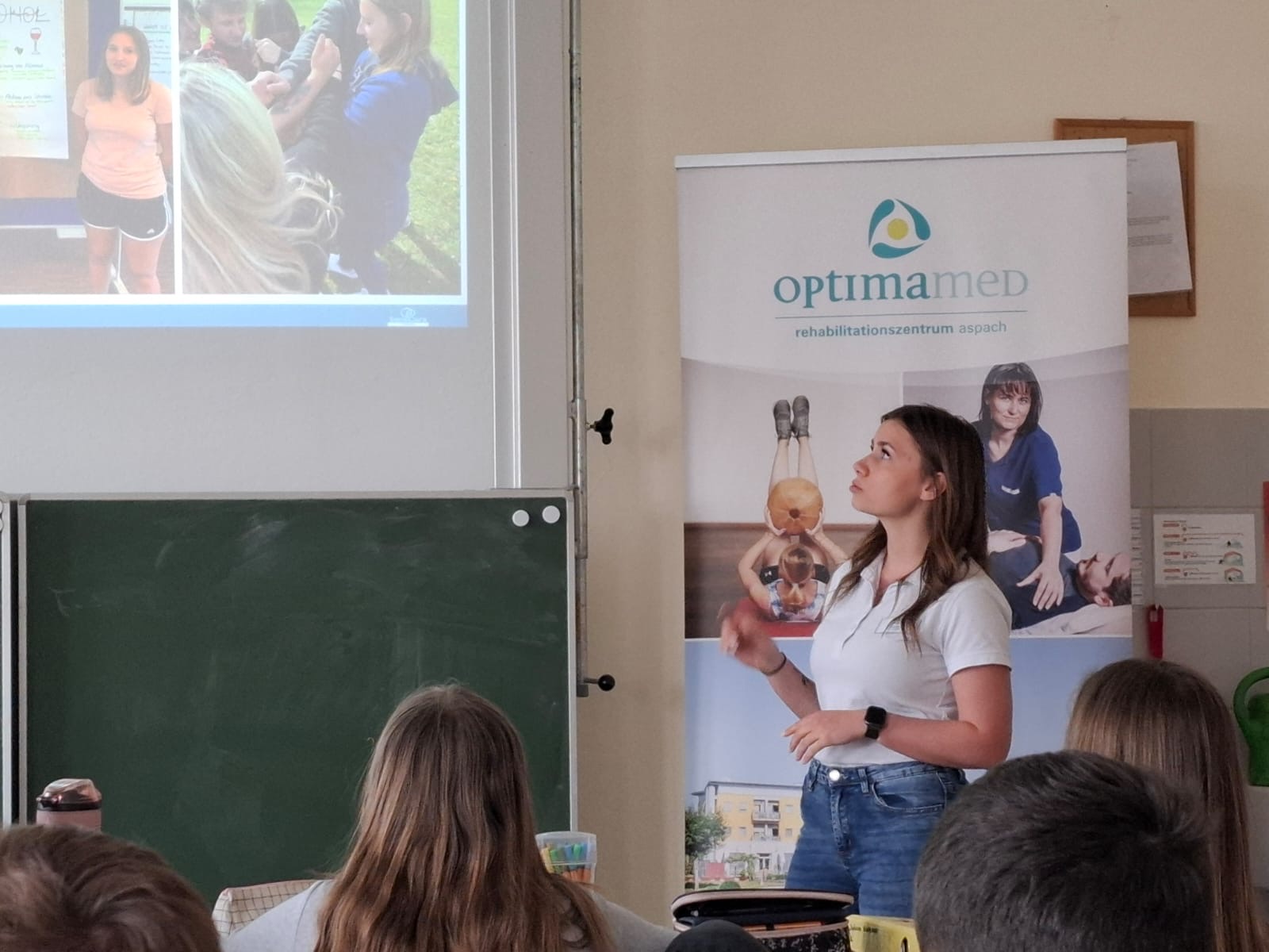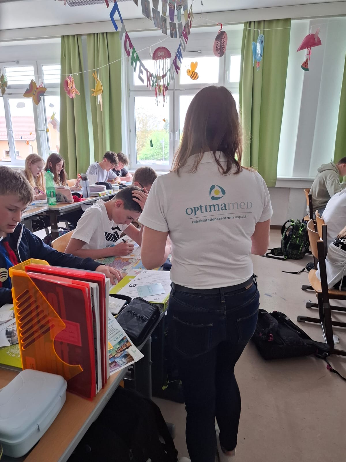 Im Rahmen der Berufsorientierung besuchten Vertreterinnen von OptimaMed aus Aspach unsere Schule, um den Schülerinnen und Schülern einen spannenden Einblick in die vielfältigen Berufsmöglichkeiten im Gesundheits- und Rehabilitationsbereich zu geben.