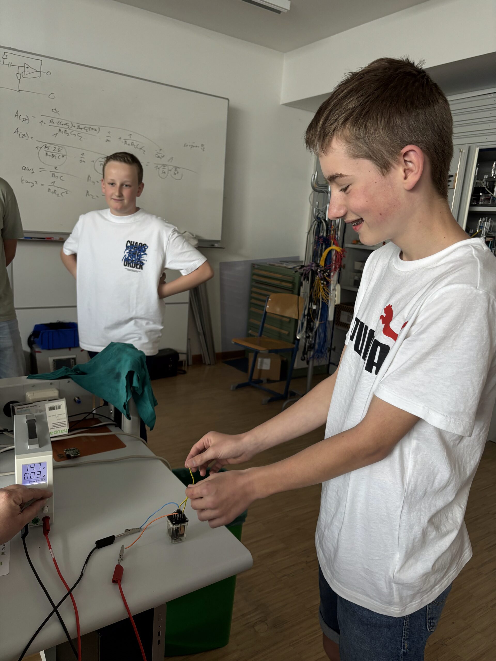 Von der Gestaltung einer eigenen Homepage über erste Schritte im Programmieren bis hin zur Entwicklung einer Alarmglocke – unsere Kinder konnten sich in verschiedenen Bereichen kreativ und technisch ausprobieren. Besonders faszinierend waren auch die physikalischen und chemischen Experimente, bei denen sie nicht nur zusehen, sondern selbst aktiv mitmachen durften.