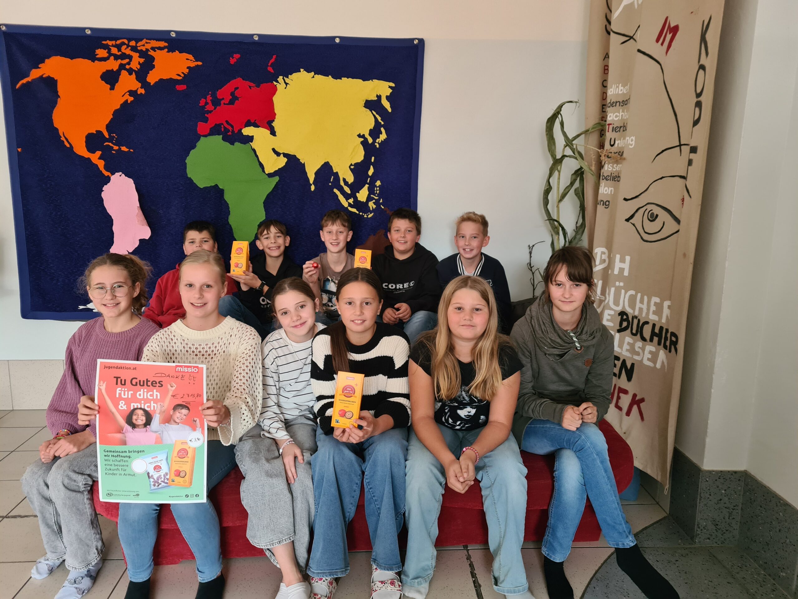 Auch in diesem Jahr beteiligten sich unsere Firmlinge mit großem Engagement an der Missio-Jugendaktion, um Solidarität mit jungen Menschen in ärmeren Ländern zu zeigen. Im Rahmen dieser Aktion verkauften die Jugendlichen fair gehandelte Schokopralinen, deren Erlös Projekten in der Weltkirche zugutekommt, heuer insbesondere Initiativen für Kinder und Jugendliche im Südsudan.