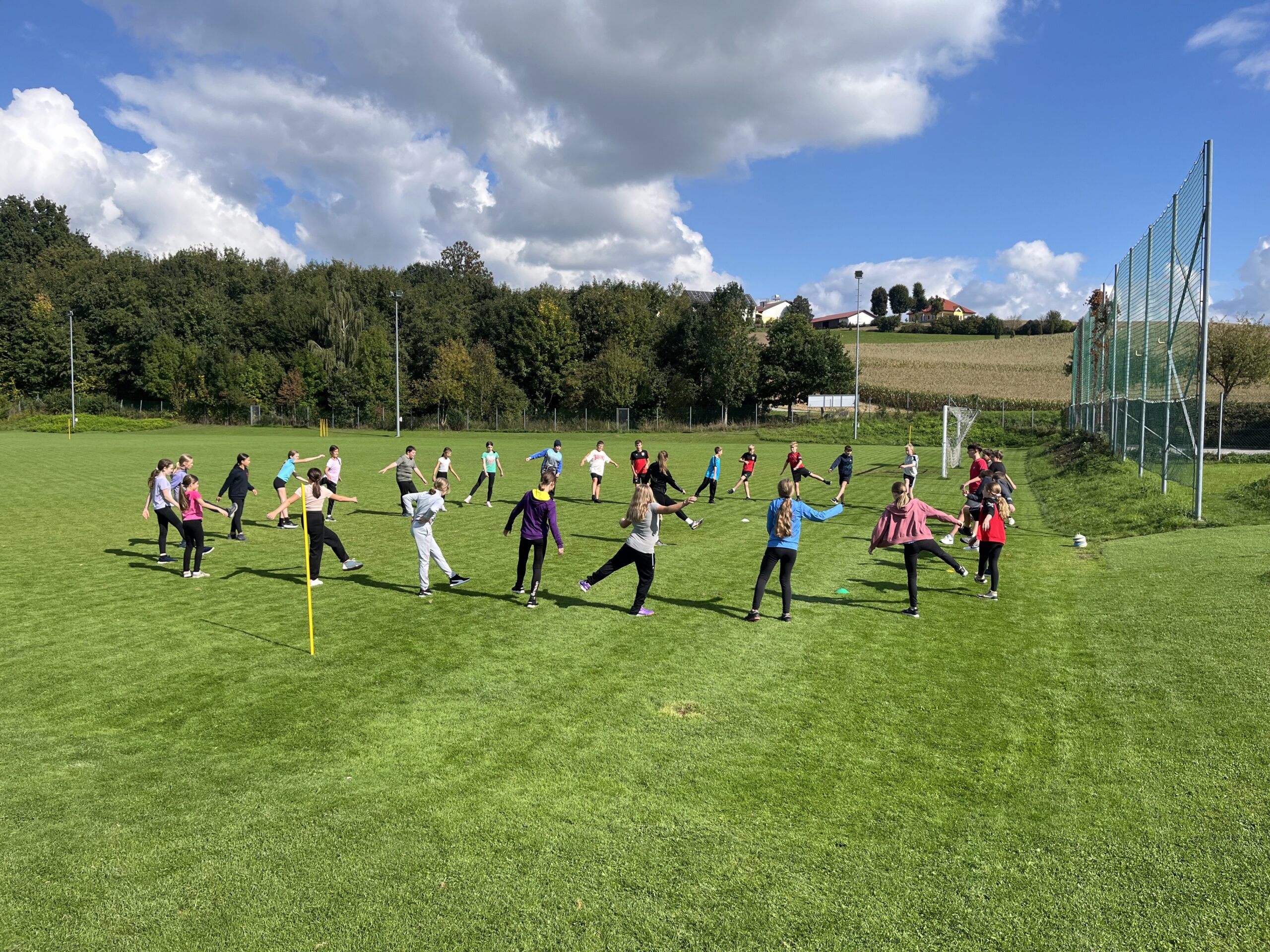 Unsere Klassen nutzten die Gelegenheit und verlegen den Sportunterricht nach draußen – unter anderem auf den Fußballplatz der Union Aspach-Wildenau.