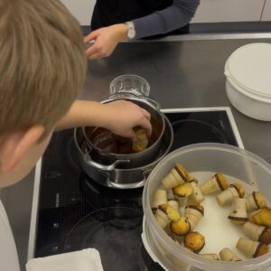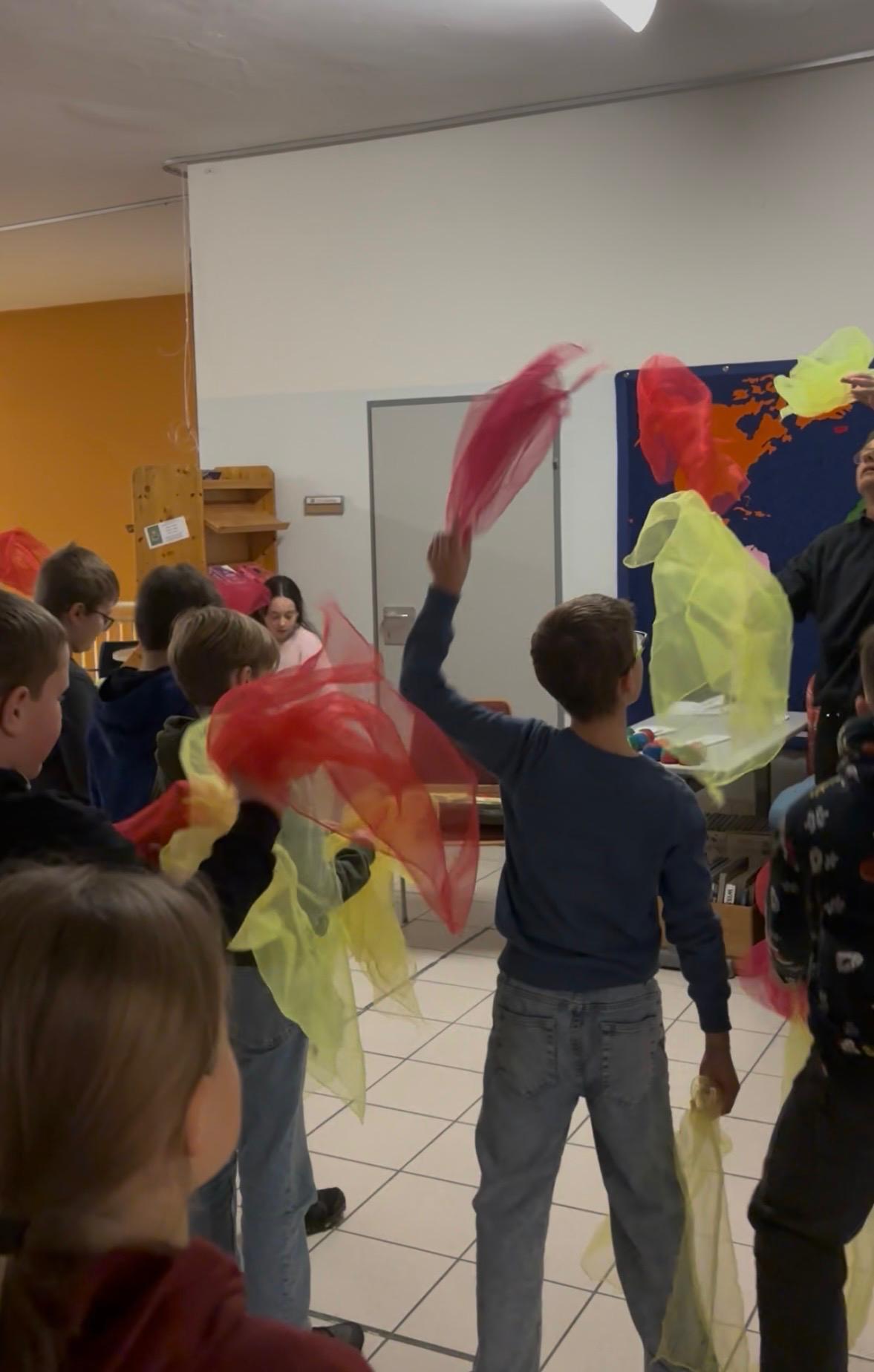 Beim Jonglieren war Geschicklichkeit gefragt 🤹♀️, spannende Chemie-Experimente 🧪 sorgten für Staunen und in der Biologie 🔬 gab es viel Neues zu entdecken. Auch musikalisch wurde es lebendig: Klänge und Rhythmen 🎶 wurden gemeinsam erprobt und erlebt. Besonders genussvoll wurde es beim gemeinsamen Zubereiten und Verkosten kleiner Leckereien 🍽️.