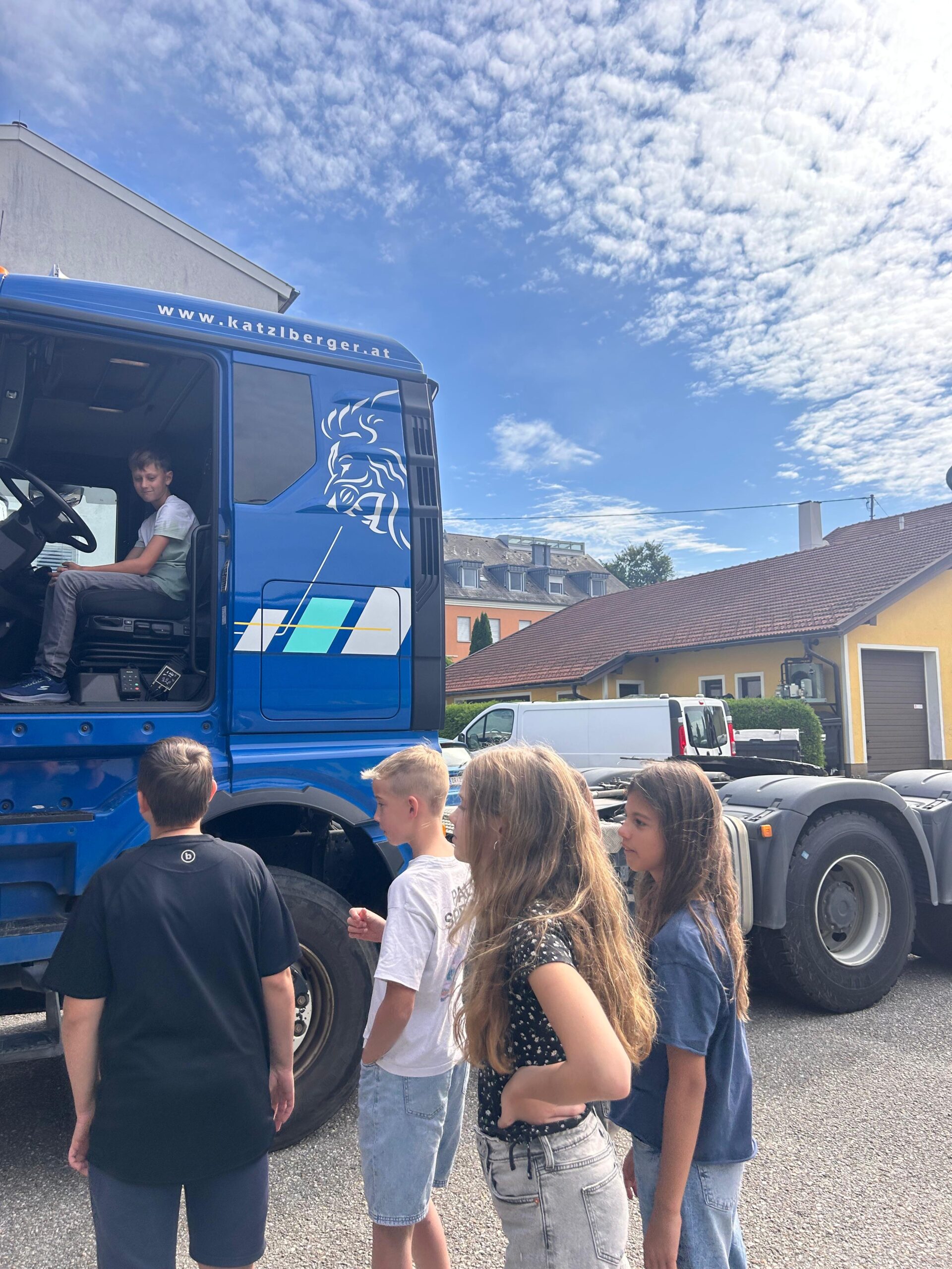 Anhand praktischer Übungen konnten die Kinder erleben, wie eingeschränkt die Sicht von LKW-FahrerInnen ist und wie leicht sich Personen im toten Winkel „unsichtbar“ machen. Besonders eindrucksvoll war es, selbst im Führerhaus Platz zu nehmen und zu erkennen, dass mehrere MitschülerInnen neben oder sogar direkt vor dem LKW nicht sichtbar waren.